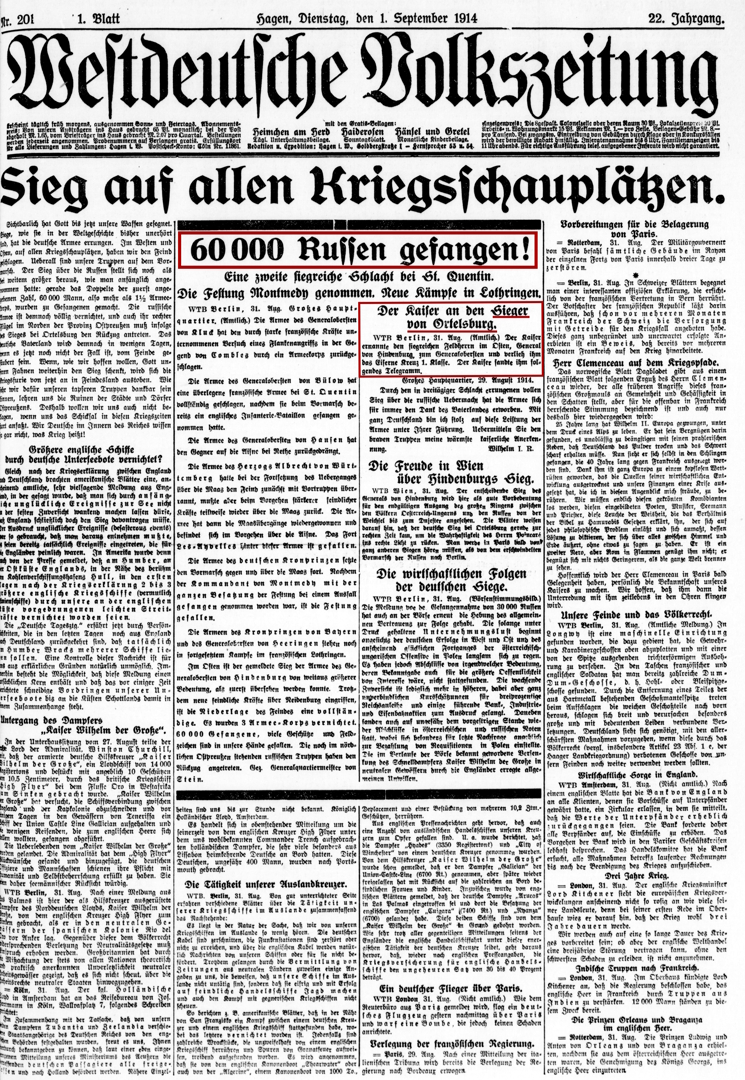 Die militärische Karriere Hindenburgs war 1911 zuerst einmal beendet. Er wurde auch nicht wieder reaktiviert, als der 1. Weltkrieg ausbrach. Dann jedoch wollten der Kaiser und die Oberste Heeresleitung nach Rückschlägen gegen das russische Heer einen Schlachtplan von Erich Ludendorff ausführen lassen. Dieser besaß jedoch nicht den dafür notwendigen militärischen Rang. Daher besann sich die Oberste Heeresleitung auf Paul von Hindenburg und berief ihn als Pseudo-Führungsfigur. Als der Schlachtplan Ludendorffs gelang, ließ sich Hindenburg, der nichts beigetragen hatte, für den militärischen Erfolg feiern und benannte zudem den Schlachtort in Ostpreußen aus Propagandazwecken um. Paul von Hindenburg durchlief die klassische Offizierslaufbahn eines Adeligen und brachte es bis zum General der Infanterie. Das war es dann aber vorerst. Prof. Dr. Wolfram Pyta, der Verfasser des wissenschaftlichen Standardwerks zu Paul von Hindenburg[1], schreibt in seinem Buch „Hindenburg - Herrschaft zwischen Hohenzollern und Hitler“ hierzu: „Mit dem 18. März 1911 schien Hindenburgs militärische Karriere damit definitiv an ihr Ende gelangt zu sein – eine mehr als respektable Laufbahn, die ihn bis weit an die Spitze der militärischen Hierarchie geführt hatte, aber zum Schluss die bittere Erkenntnis bereithielt, dass es bis ganz nach oben doch nicht gereicht hatte.“[2] und dokumentiert die Einschätzung der obersten Führung auf Basis einer eidesstattlichen Erklärung des Generals von Schellendorf: „Allem Anschein nach fehlte Hindenburg nach Einschätzung Lynckers[3] jene Tatkraft und Energie, über die ein Armeeinspekteur unter den neuen Bedingungen verfügen musste.“ [4] Hindenburg wurde im 1. Weltkrieg nicht reaktiviert Hindenburg scheidet 1911 aus dem Militärdienst aus: „Zunehmend legte sich ein Hauch von Bitterkeit über seinen Lebensabend … er empfand immer stärker den Stachel, dass ausgerechnet er zum Müßiggang verurteilt war, während gleichaltrige Generale weiterhin ihre Dienste entbieten durften.“[5] Noch schlimmer: Gleichaltrige behielten ihre militärischen Verwendungen und zogen in den Jahren nach 1911 karrieremäßig sogar an ihm vorbei. Bei Beginn des 1. Weltkriegs werden viele Offiziere und Generale reaktiviert, Hindenburg allerdings nicht – Kaiser und Oberste Heeresleitung hatten für ihn keine Verwendung! Nachdem die deutsche Kriegsplanung gleich in den ersten Wochen scheiterte und zaristische russische Armeen, die schnell mobilisiert wurden, auf deutsches Territorium vorgedrungen waren, wollte der deutsche Oberbefehlshaber zurückweichen. Daraufhin entschied die Oberste Heeresleitung (OHL), diesen abzuberufen und zu ersetzen. Hindenburg wird lediglich für repräsentative Funktion geholt Die OHL beauftrage Erich Ludendorff, einen Schlachtplan gegen die zaristische Armee zu erarbeiten. Ludendorff war jedoch nicht im Besitz eines Rangs, der ihm erlaubt hätte, eine Armee zu führen. Deswegen brauchte man jemanden, der sich mit einer repräsentativen Funktion zufriedengeben würde und Ludendorff nicht stört. Und da besann man sich auf Hindenburg als „kommandierenden General“. Dieser wurde nicht einmal in die militärische Situationsanalyse eingeweiht. Ludendorff fuhr nach Freigabe über Hannover zum Armeeoberkommando im Osten. Prof. Dr. Pyta im Filminterview am 24. Juli 2025 zur Situation: „In Hannover steigt Hindenburg in den Zug ein, wirft einen Blick auf den Kriegsplan und sagt: ‚Das wird alles seine Richtigkeit haben‘.“[6] Der durchaus riskante Schlachtplan für die Schlacht in Masuren gelingt: Bei der folgenden Einkesselungsschlacht in Masuren (Ostpreußen) fielen mehr als 30.000 russische Soldaten und 90.000 gerieten in Gefangenschaft. Hindenburg lässt Schlacht aus Propagandagründen umbenennen Prof. Dr. Pyta weiter: „Die Schlacht hat nicht bei Tannenberg stattgefunden, das ist noch 30, 40 Kilometer entfernt, liegt auch in Masuren, also im südwestlichen Teil von Ostpreußen. Aber dort, in Tannenberg selbst, hat 1410 der deutsche Orden eine vernichtende Niederlage gegen das vereinigte polnisch-litauische Heer erlitten. Und die Neuschlacht von Tannenberg ist gewissermaßen die Revanche. Damit wird ein Makel aus der preußisch-deutschen Geschichte abgewischt.“[7] Dazu Dr. Wolfgang Niess im Filminterview am 29. September 2025: „Er [Hindenburg, Anm. d. Verf.] schrieb dann an den Kaiser, er möge doch diese Schlacht bei Tannenberg nennen und hat dem Kaiser auch die Hintergründe erläutert, die der natürlich gar nicht kannte. Und dieser Vorschlag Hindenburgs ist dann bereitwillig aufgegriffen worden.“[8] Hindenburg hatte nichts mit dem Verlauf und dem Ausgang der Schlacht zu tun! De facto hatte Hindenburg nichts mit dem Verlauf und dem Ausgang der Schlacht zu tun, der militärische Erfolg war anderen zu verdanken. Dazu Dr. Niess weiter: „Er hat nie daran gedacht, diesen Ruhm mit anderen, die ihn wirklich verdient hätten, und da ist in erster Linie Max Hoffmann, der erste Offizier des Stabes zu nennen, und in zweiter Linie ist Ludendorff zu nennen, der Generalstabschef. Er hat nie daran gedacht, den Ruhm mit ihnen zu teilen, sondern hat sie auch in Äußerungen immer als seine Gehilfen bezeichnet. Ludendorff war den ganzen Krieg durch nur sein Gehilfe und hatte nie eine eigenständige Position, was die tatsächlichen Verhältnisse genau umgekehrt hat.“[9] Somit ließ sich Hindenburg sich nicht nur für einen militärischen Erfolg feiern, zu dem er nichts beigetragen hatte, sondern er gab der Schlacht auch noch einen Namen, der nicht den Tatsachen entsprach. Hindenburg offenbarte bereits bei seinem ersten Erscheinen auf der Weltbühne drei problematische Charaktereigenschaften, welche in seinem weiteren Handeln immer deutlicher zutage traten: 1. War die Wahrheit für ihn keine relevante Leitlinie für sein Handeln. Dies wurde bereits durch die rein propagandistisch motivierte „Verlegung“ der Schlacht an einen gut vermarktbaren 