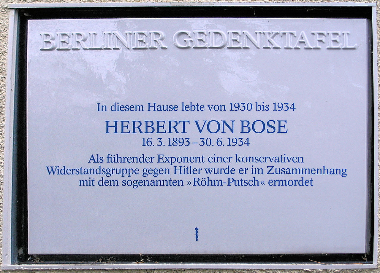 Berliner Gedenktafel am Haus Neuchateller Straße 8 in Berlin-Lichterfelde für den im Zuge der Aktion ermordeten Herbert von Bose (Autor: Wikipedia, OFTW Berlin)